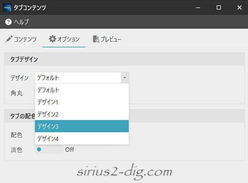 しかしながらタブコンテンツに関しては”デフォルト”=”デザイン1”ではないんですね。